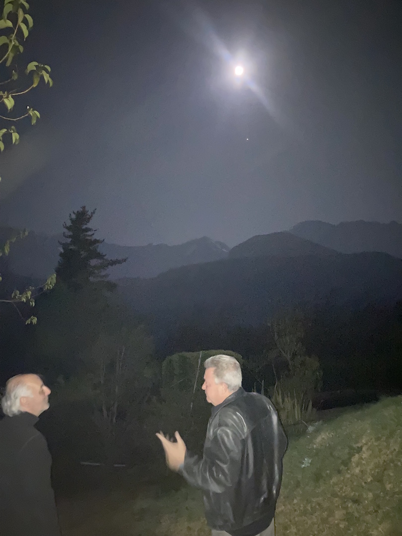 I had to share this one : JIM and the MOON At the foot of the Cordillera de Los Andes, at Luis' house, another good friend of mine. In the picture chatting with Jim. Great time with more friends. The MOON and JIM,, a nice match |